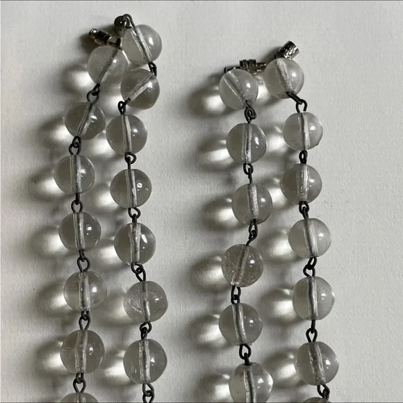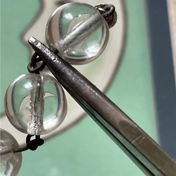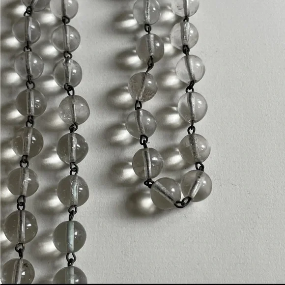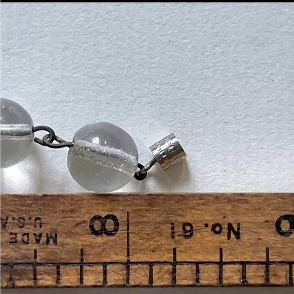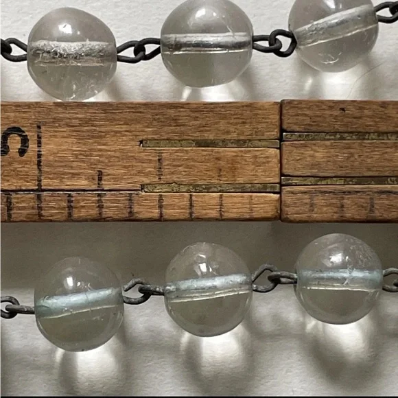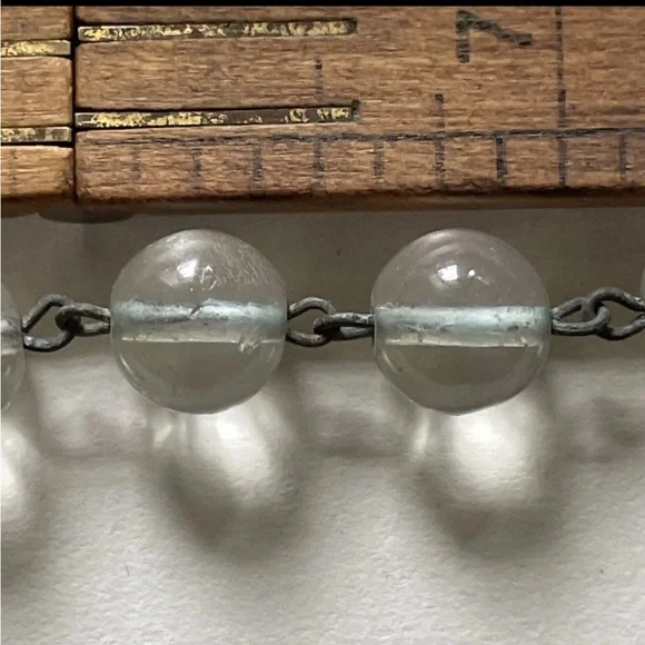 Antique rock crystal drilled orbs, approximately 3/8th. Original brass connectors on both necklace and bracelet, matching set. Metal has much patina due to age- over 100 years-old.As observed in the photos, gorgeous light pools below each crystal orb when shining upon them, and inverted images can be observed when looking through the orbs.Modern silver tone barrel clasps have been added to each piece.Bracelet is approximately 8.5" long and the necklace is approximately 18" long.Please review all photos prior to purchase and let me know if you have any questions or requests prior to purchase. Items are sold as is.The pieces are sturdy and ready to wear, but please keep in mind the delicate nature and age of the pieces and wiring and use with that in mind :)