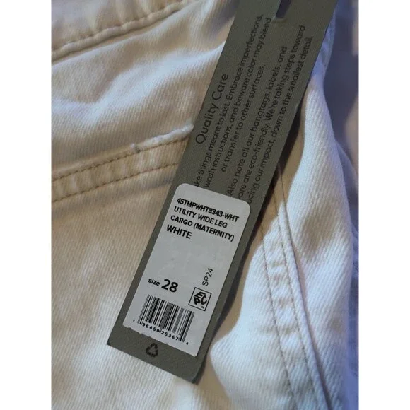 Hudson Womens Maternity White Comfort Utility Wide Leg Cargo Jeans Size 28 NWT