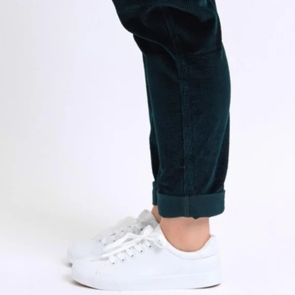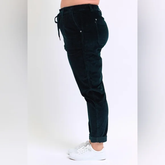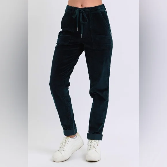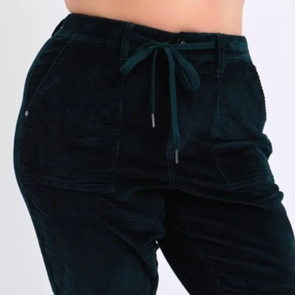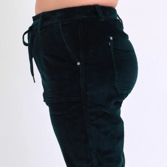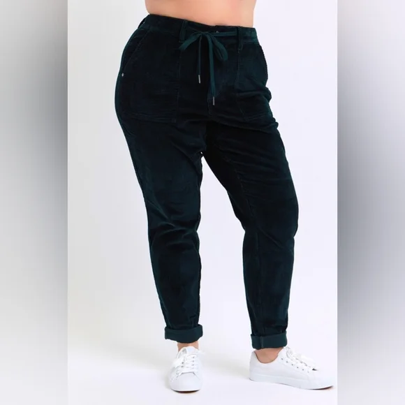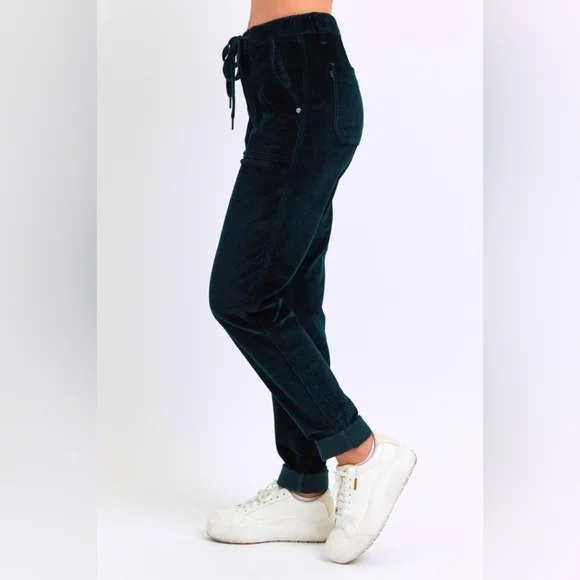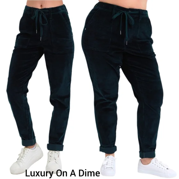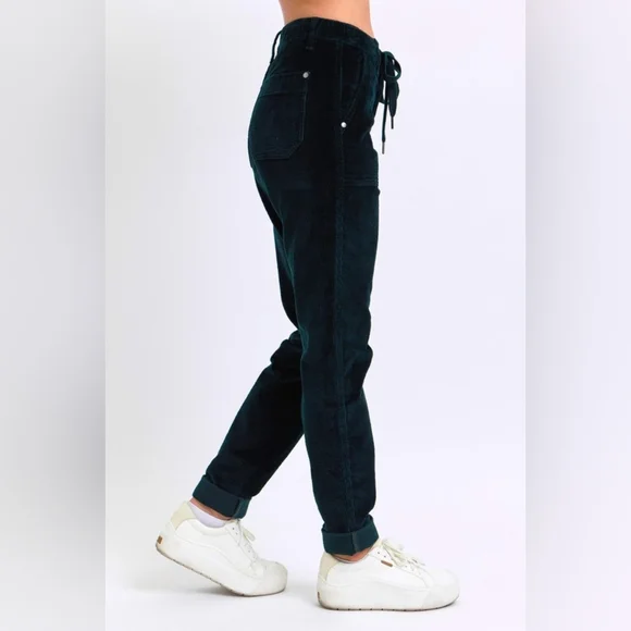 Judy Blue Corduroy High-Rise DrawstringStraight Tapered Cuffed Jogger PantsWhether you´re dressing up for a casual day out or engaging in leisure activities these pants have you covered in any setting Starting with a stunning cotton dark green corduroy that offers an eye-catching standout vintage-inspired addition to any outfit.With a retro high-waist offers functionality and elongates the silhouette preventing muffin top providing a slimming effect while offering comfortable support.Features a jogger style drawstring tie waist, zipper, button closure and deep side patch pockets that lends a bohemian leisure vibe.The relaxed boyfriend fit and straight leg keeps it classy while the cuffed hem maintains a laid-back girl-next-door aesthetic.Equipped with belt loops offer the option to accessorize for a personalized touch. Details:Brand: Judy BlueFit: RelaxedLeg: Straight taperingHem: CuffedColor: Dark GreenClosure: Zipper, Button, DrawstringStretch: SlightlyMaterial: 98%Cotton / 2% SpandexCare instructions: Machine wash cold. Tumble dry low. Measurements in inches(See picture) Shop our full collection of:Resort fall wedding Bohemian modern vacation dress 60’s 70’s beachy western pool birthday gift bride girly date night minimalist y2k 00s cruise travel grannycore coastal eclectic grandma sneakers swimwear boots bikini aesthetic rave paisley retro holiday chic dressy winter valentines color-block grunge goth punk tennis preppy golf outdoor activewear
