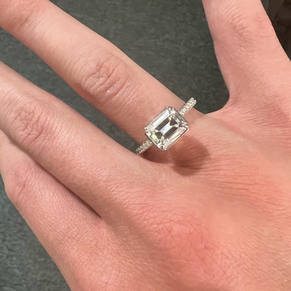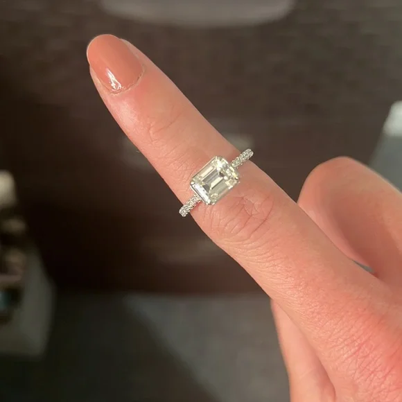 14k Sideway emerald cut Moissanite engagement ring conflict free 7 3/4