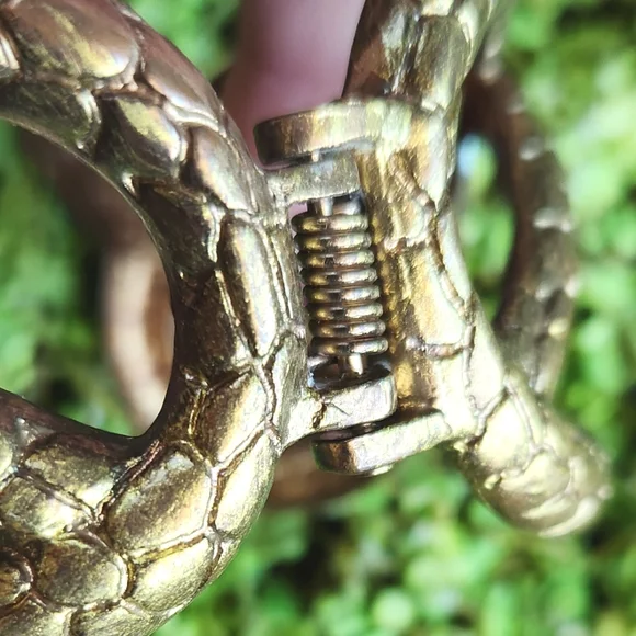 Vtg SNAKE Coiled 2" w Detailed Gold Copper Spring Bracelet Cuff Bangle Wrap EUVC