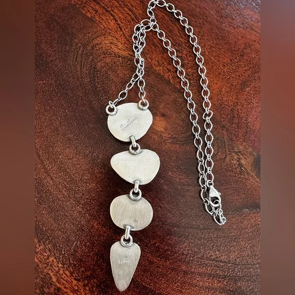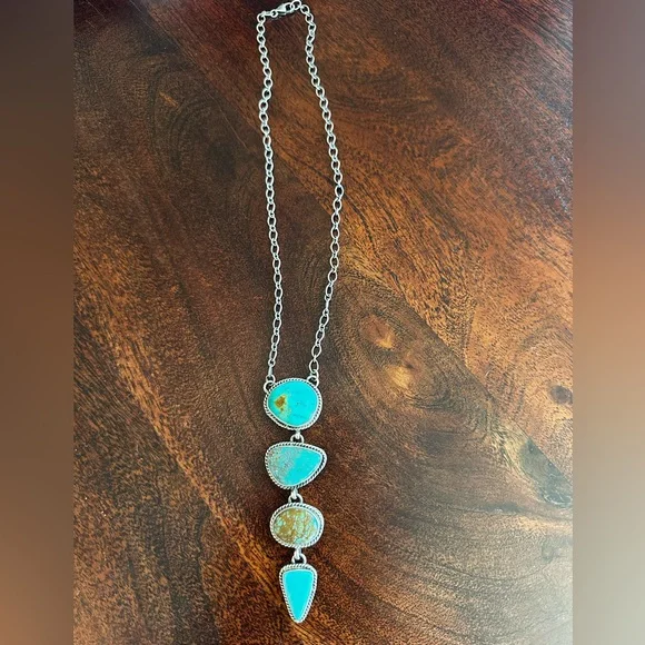 Turquoise and Sterling Silver necklaceHandmade with artist signature on the backStone length 4 inchesChain length 18 inches
