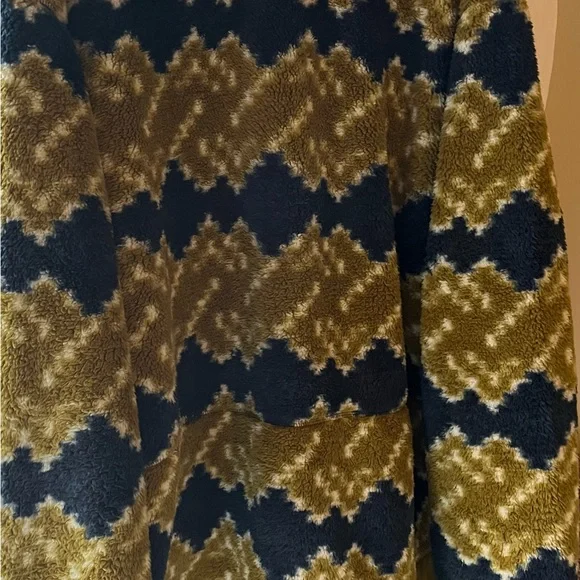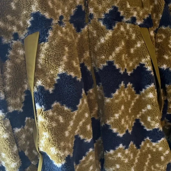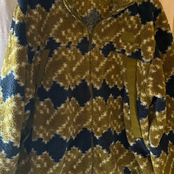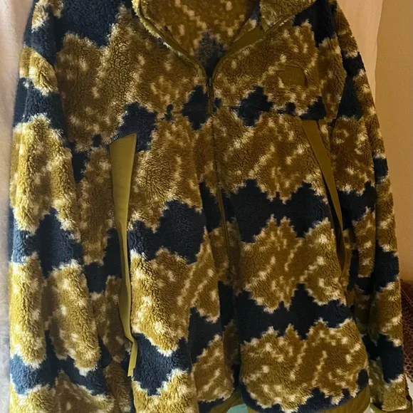 Super soft and comfy North Face Fleece full zip Jacket in Kiwi and Blue Printed Fleece.NWOT and in perfect condition.Jacket has kangaroo pockets with zippers.Pit to pit...