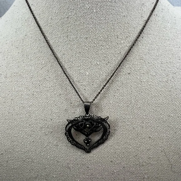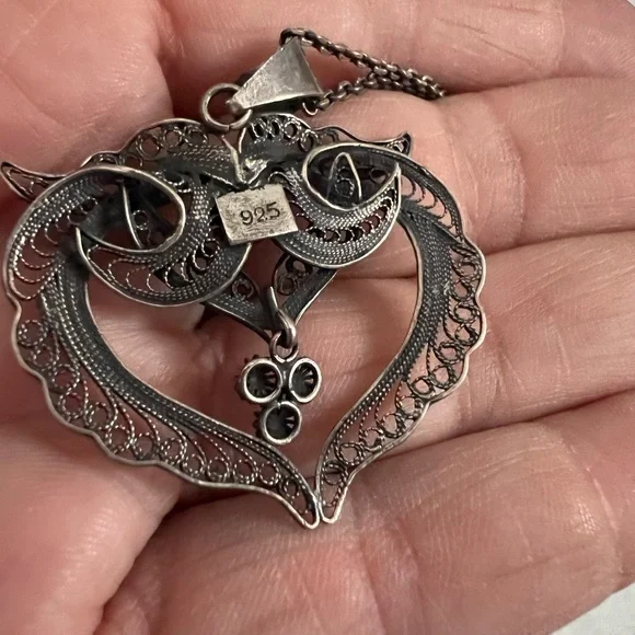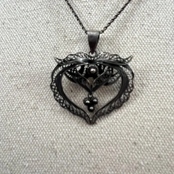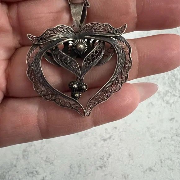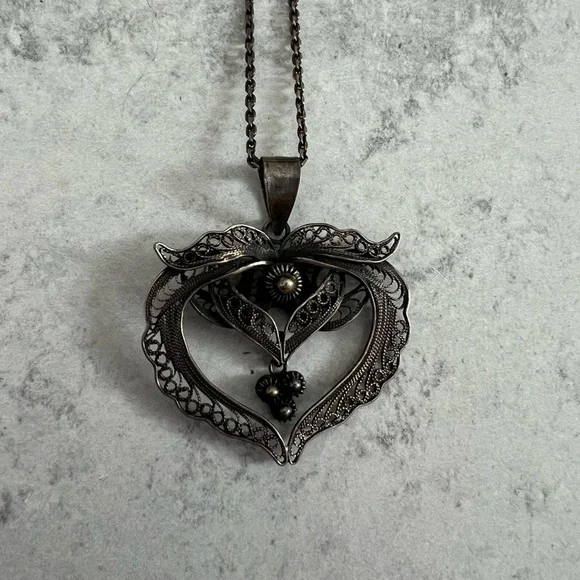 Victorian sterling silver 925 filigree steampunk heart pendant