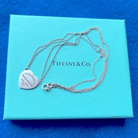 Vintage Authentic Tiffany & Co. Silver Heart Pendant Necklace Double chain