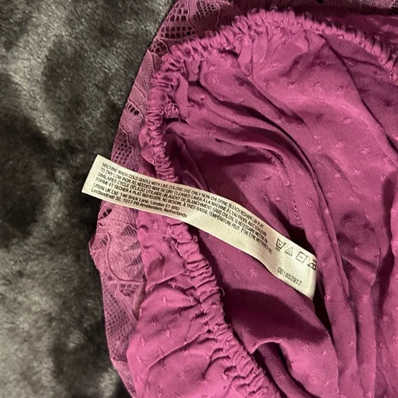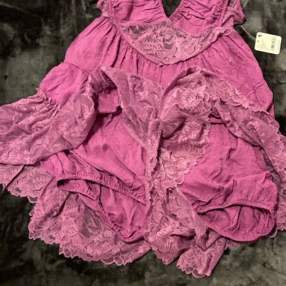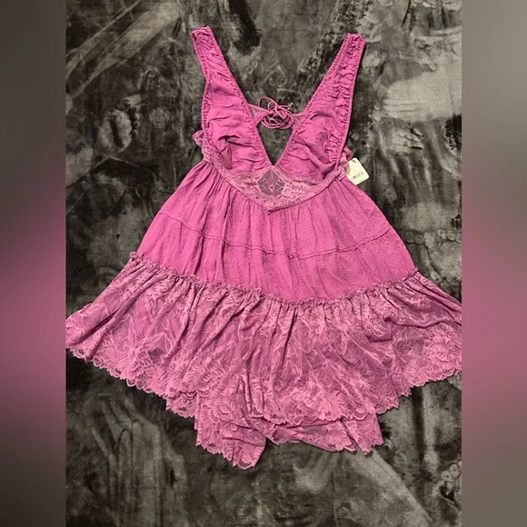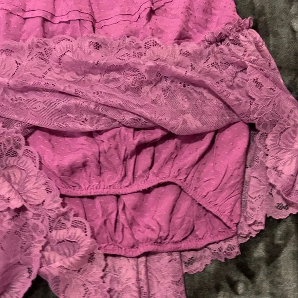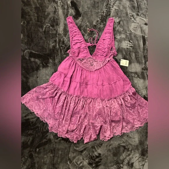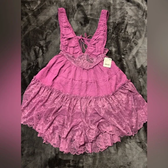 NWTSo dainty in every way, this lace-adorned romper from Intimately is featured in a tiered design for a floaty, angelic silhouette.Fit: Relaxed, breezyFeatures: Semi-sheer fabrication, plunging neckline, thick ruched straps, lace panels, open-back with tie-detail, tiered lace shorts, bloomer-style liningWhy We <3 It: This ethereal piece is sure to hold a special place in your collection.
