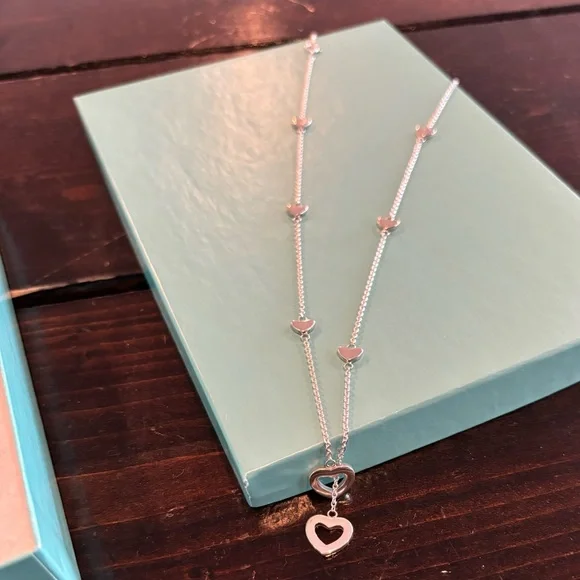 Worn Twice!! Tiffany & Co. Sterling Silver Heart Lariat Necklace.