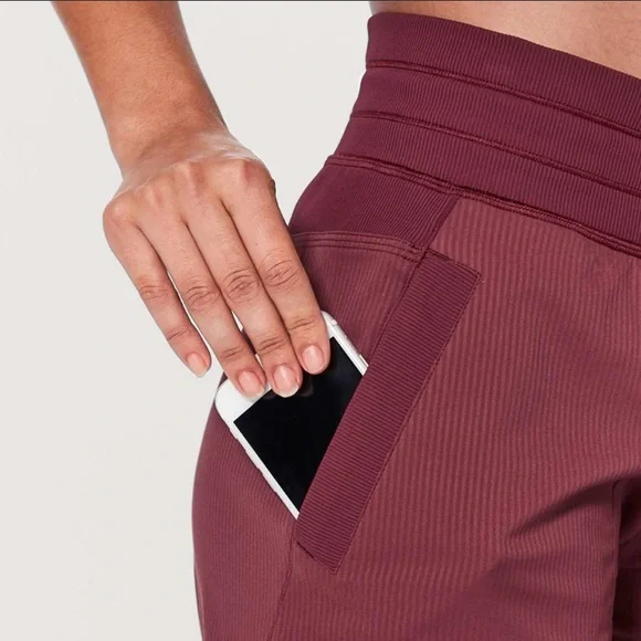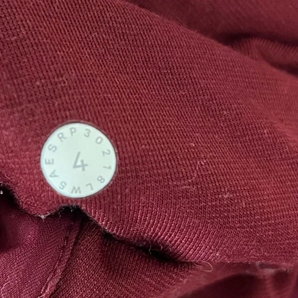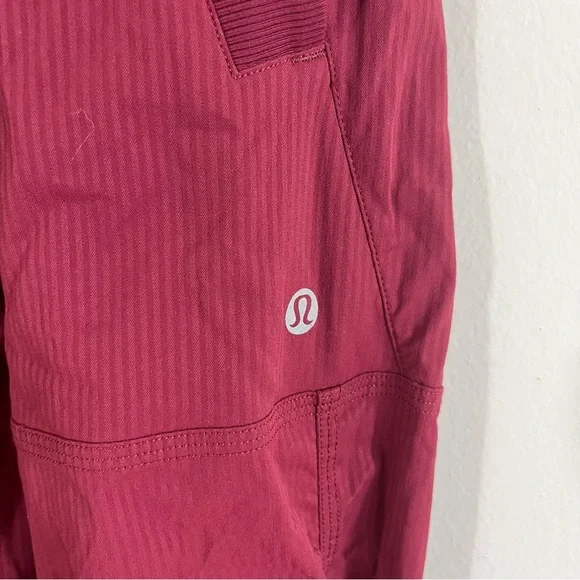 Excellent preowned condition womens size 4. Dark red maroon/burgundy color called Wine Berry. Track pant style with medium rise waist. Inseam: 32"Hidden pocket: Hidden pocket to stash your cards and keyContinuous drawcord: Won´t get pulled inside or lost in the washStyle Number: W5AESR