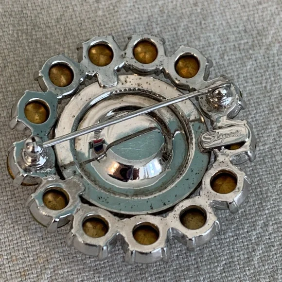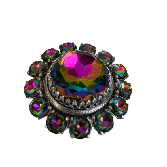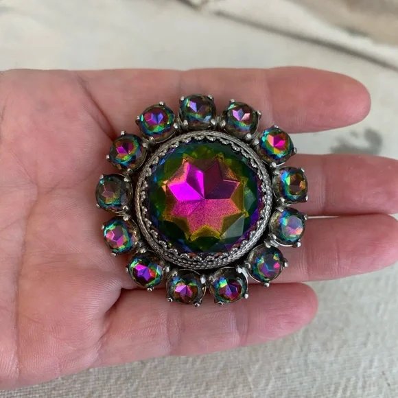 Schiaparelli Brooch Massive Watermelon stone.2” round brooch, excellent condition, may need a light cleaning.