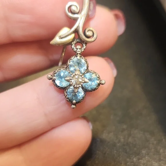 BARBARA BIXBY BLUE TOPAZ LOTUS FLOWER VINE LEAF EARRINGS GEMSTONE SS 18K