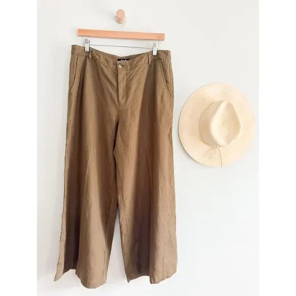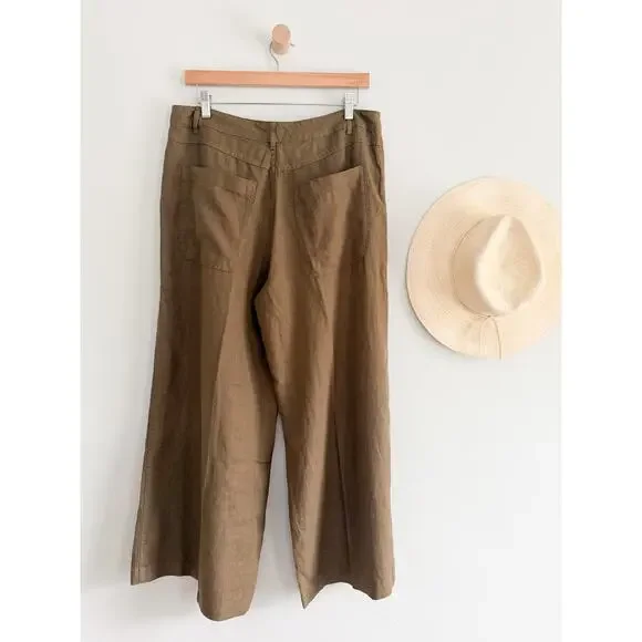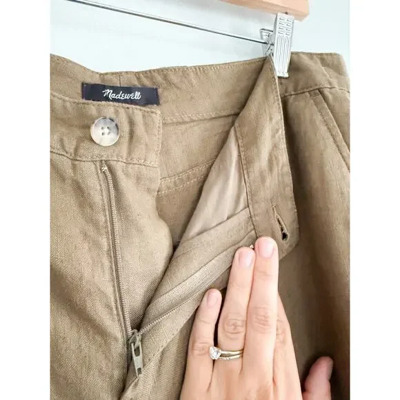 MadewellNWTPetite Zoe Relaxed Wide Pant 100% Linen safari khakiSz P12