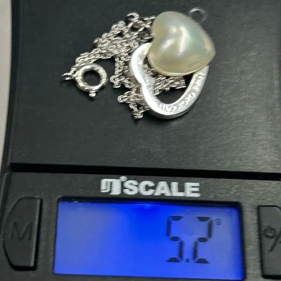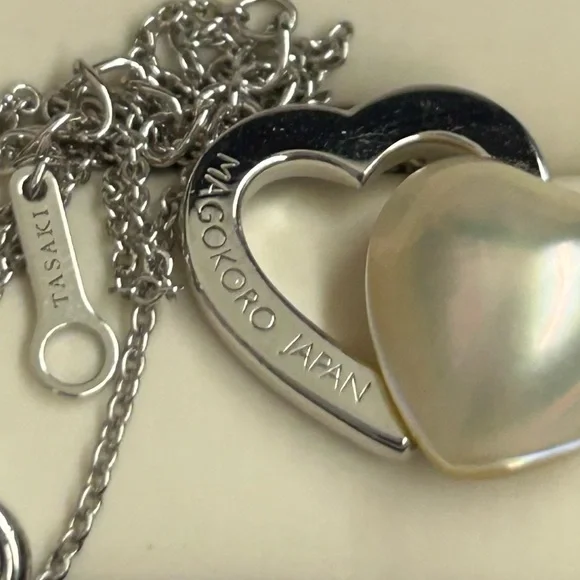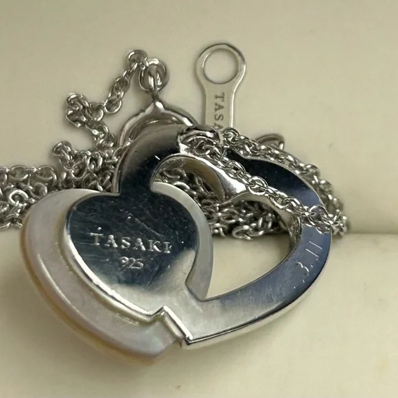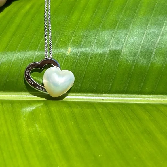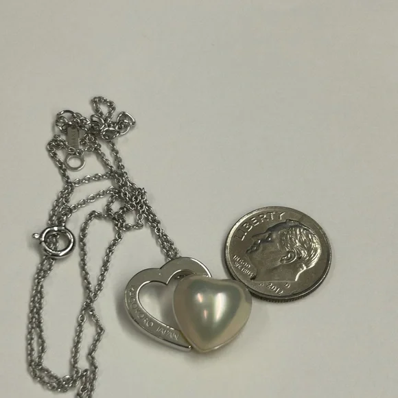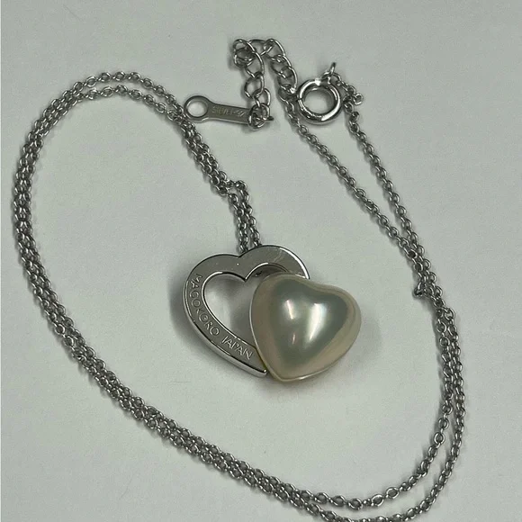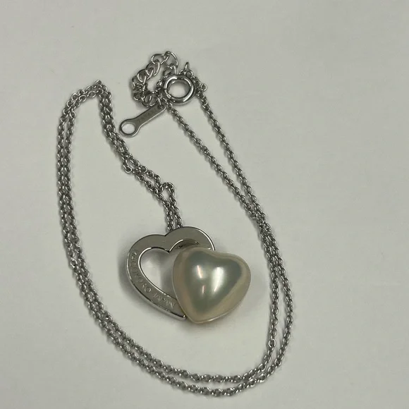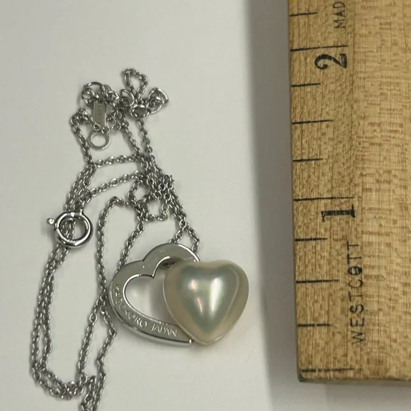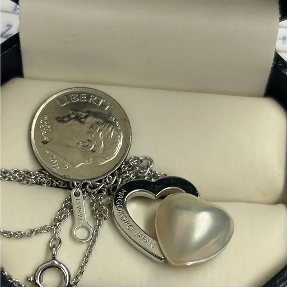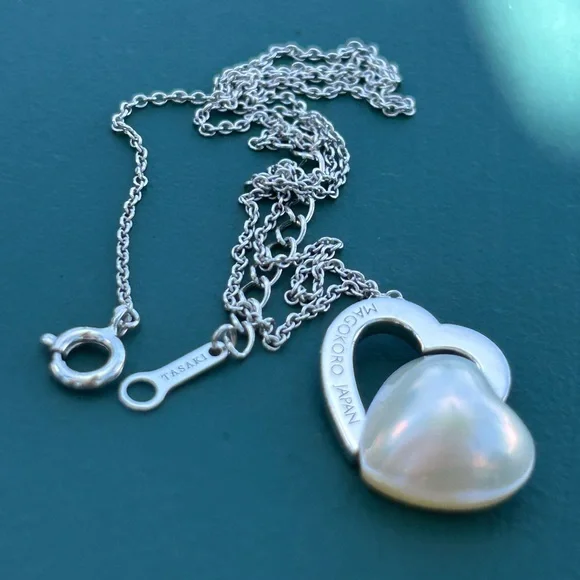 Sterling Silver Japan designer TaSaki mabe pearl Heart shaped pendant Necklace. Elegant necklace featuring a silver heart design with a stunning pearl accent. Perfect for adding a...