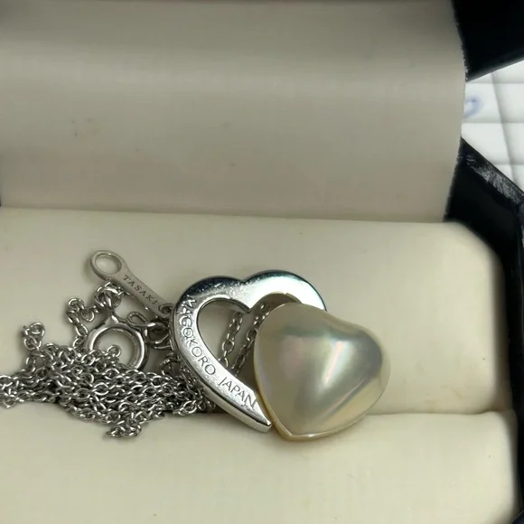 Sterling Silver Japan designer TaSaki mabe pearl Heart shaped pendant Necklace