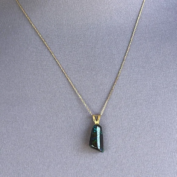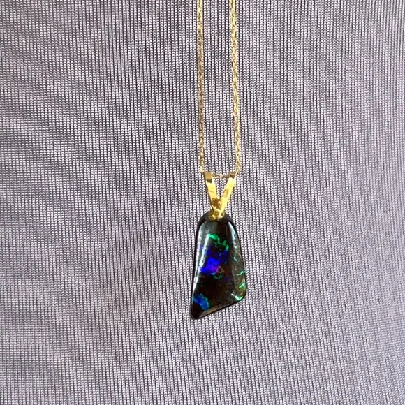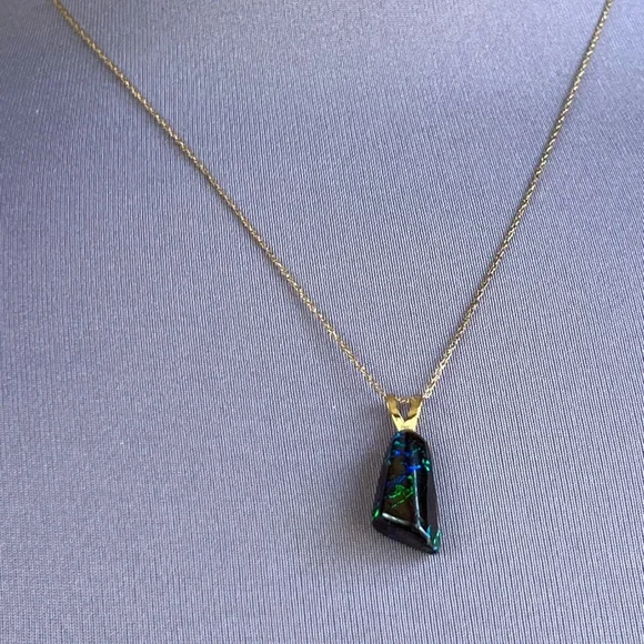 Vintage Australia Black Opal Pendant on Fine Gold Chain -RARE!! -approx. 3-4 ct.