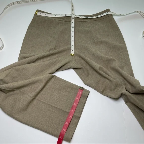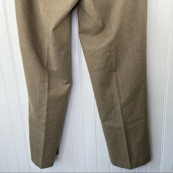 Eileen Fisher Stretch Wool PantsSize petite small (30” waist)Wool and Lycra blendFlat front Zipper and hook closureSmall waist pocket that is still sewn shutTan / oatmeal color Perfect for career wear, the office, dressing up or down easily Excellent condition Waist- 15”Rise- 9”Inseam- 27”Please see photos for measurements and fabric content. Measurements are approximate. Different screens may display colors differently. G4