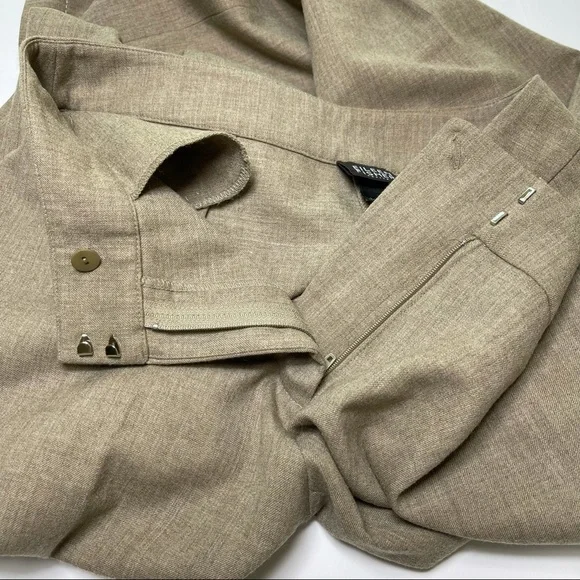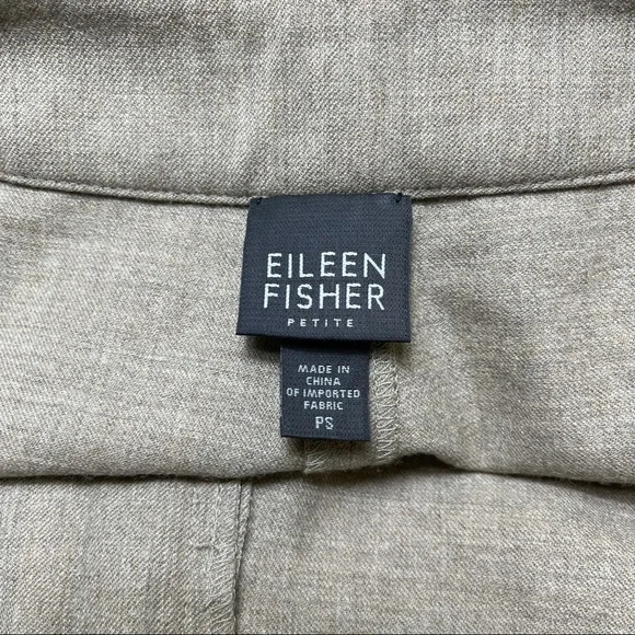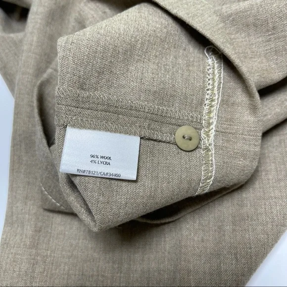 Eileen Fisher Stretch Wool PantsSize petite small (30” waist)Wool and Lycra blendFlat front Zipper and hook closureSmall waist pocket that is still sewn shutTan / oatmeal color...