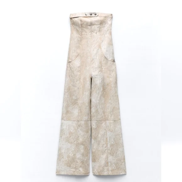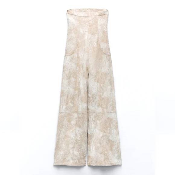 NWT ZARA * PRINTED LINEN BLEND WIDE JUMPSUIT