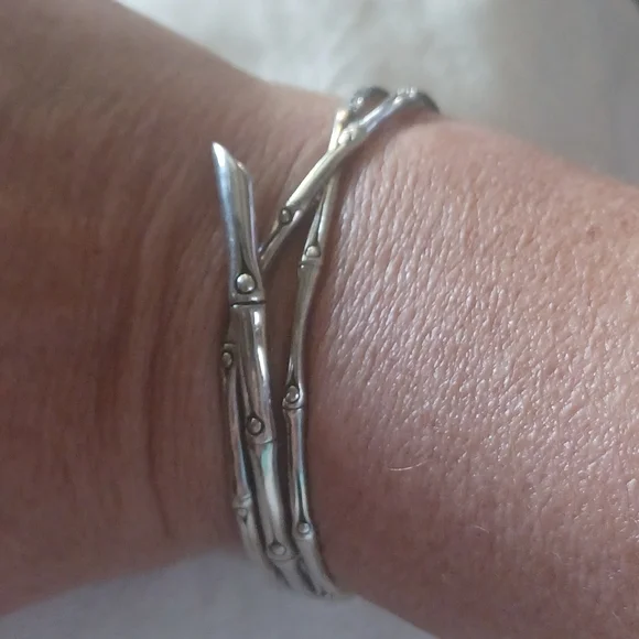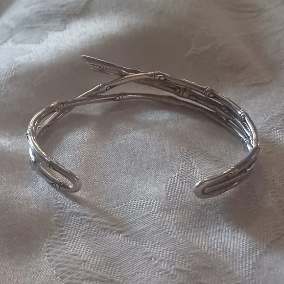Lovely John Hardy Bamboo Cuff Bracelet is a great piece to wear with anything. Classic John Hardy Bamboo design in Sterling Silver. This cuff is a size Medium but can be pinched...
