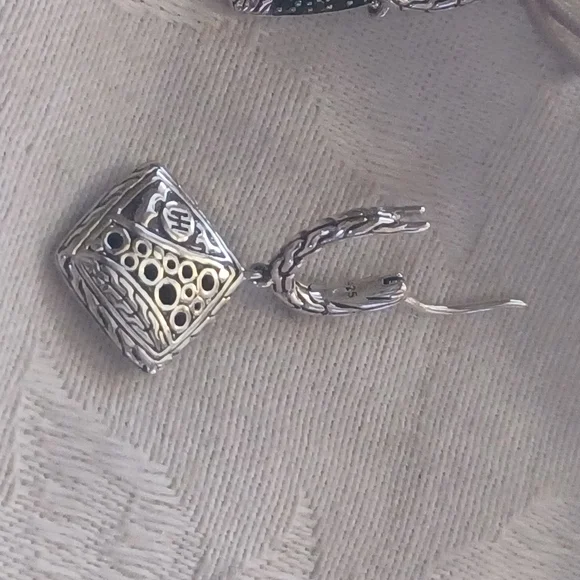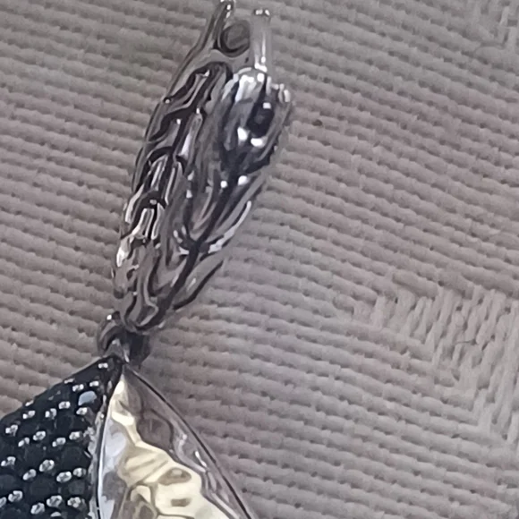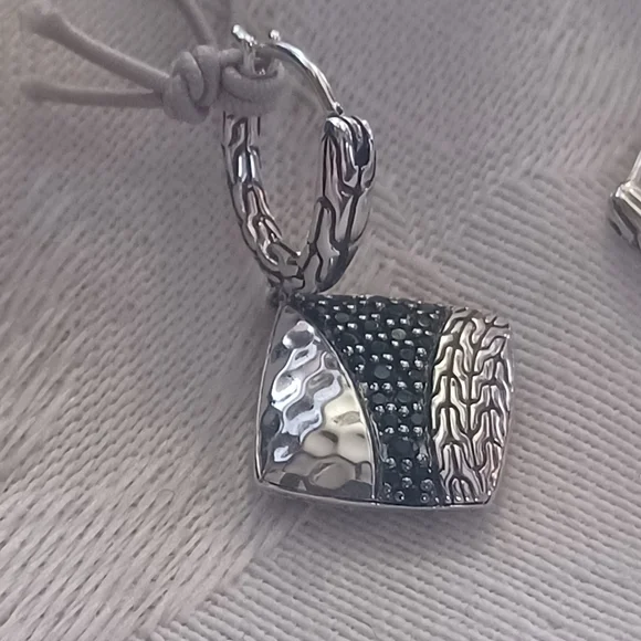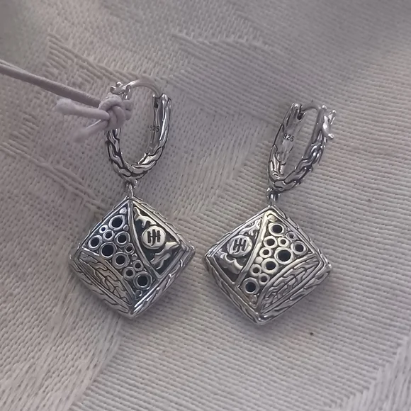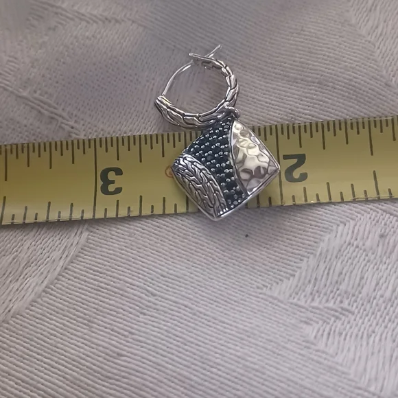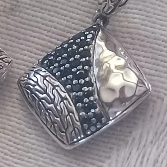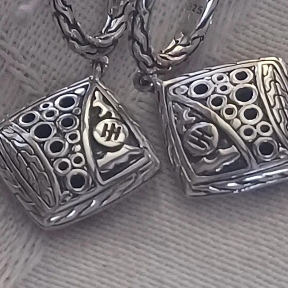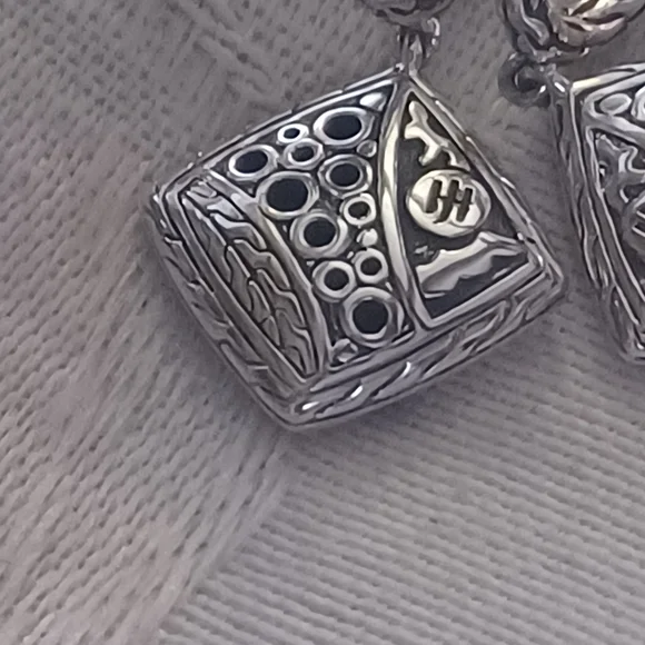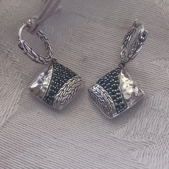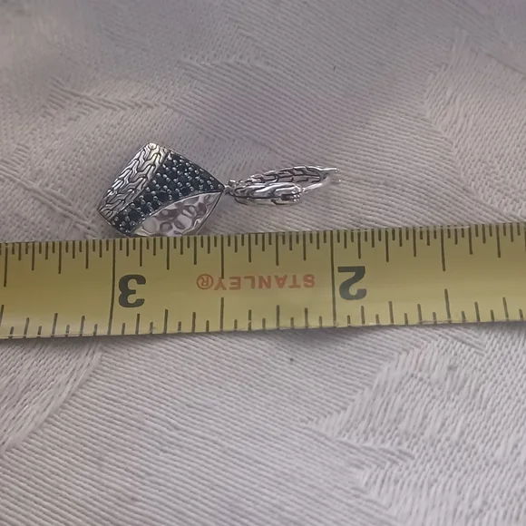 Gorgeous John Hardy Carved Chain Drop Earrings in Sterling Silver. These have elegant black spinel and black sapphire pave stones in a lava setting. The hand-carved motif...