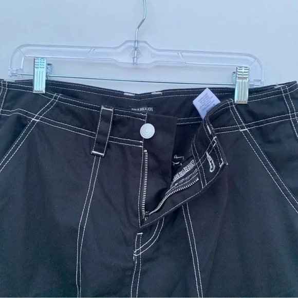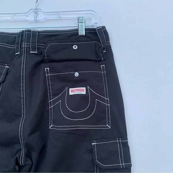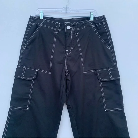 TRUE RELIGION Brand Jeans Military Cargo Pant Women’sJet BlackWide Leg Sz 30