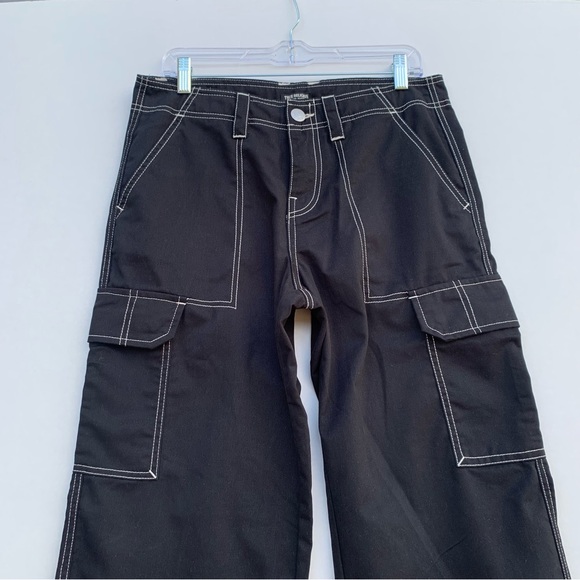 TRUE RELIGION Brand Jeans Military Cargo Pant Women’s Jet Black Wide Leg Sz 28