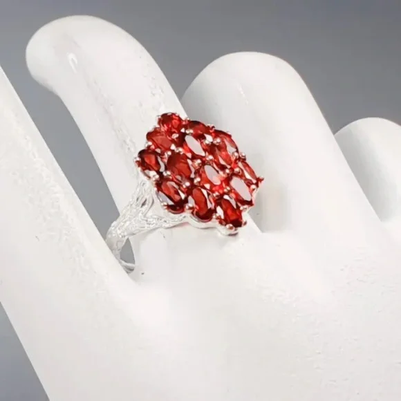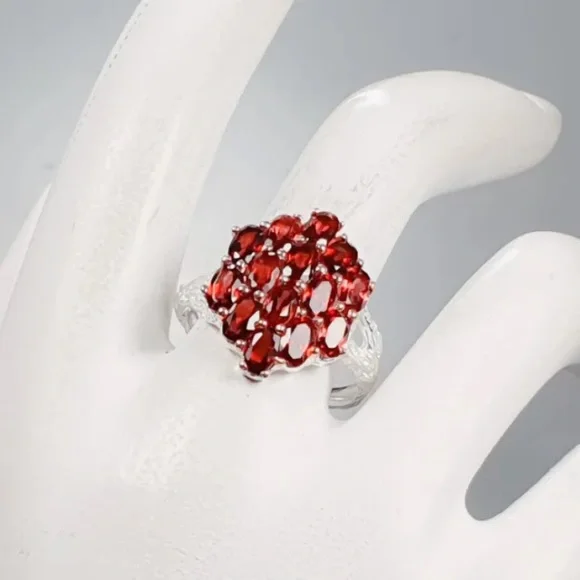 NATURAL, NOT ENHANCED GARNET RING ♥️HANDCRAFTED AND HIGH QUALITY JEWELRY, JEWELRY ARTISANS!!!♥️Gemstone Type:GarnetGemstone Color:RedGemstone Size:5x3Treatment:Not EnhancedGemstone Origin:AfricaManufacturing Country:Thailand Material:925 Sterling SilverPlating:White & Rose GoldTotal Weight:4.2 g (GEM(S)+SETTING)Size (US):8Condition:NWOT