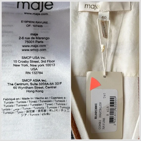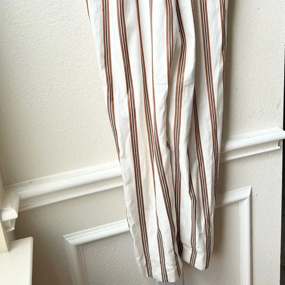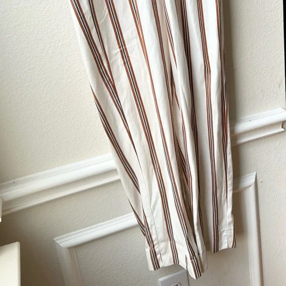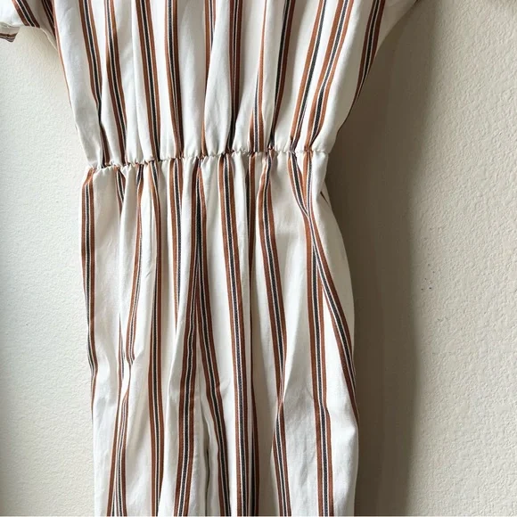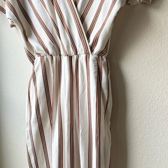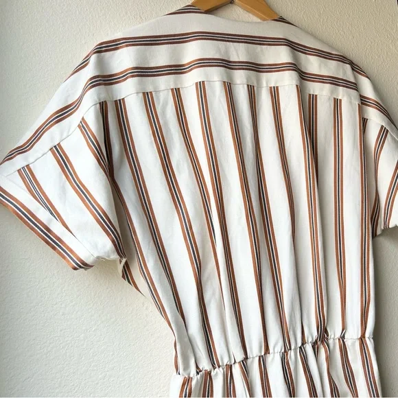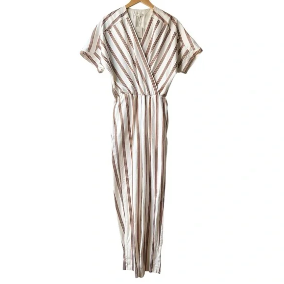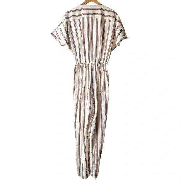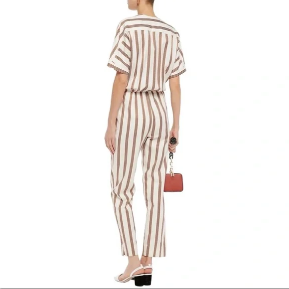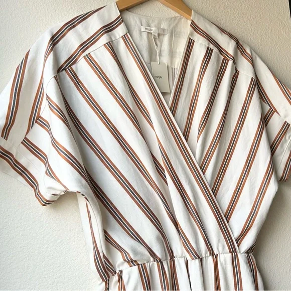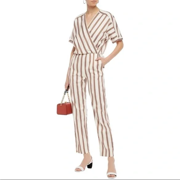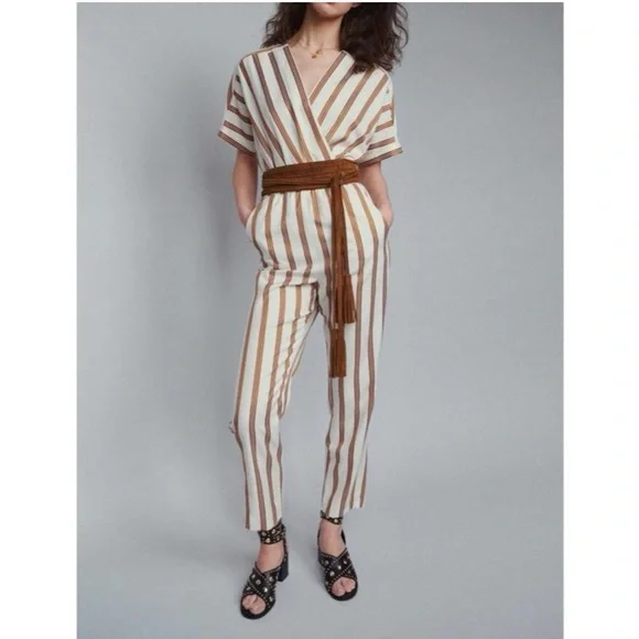 NWT Maje Pieni Striped Wrap Jumpsuit Short Sleeve Tan/White Sz L