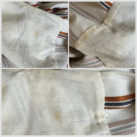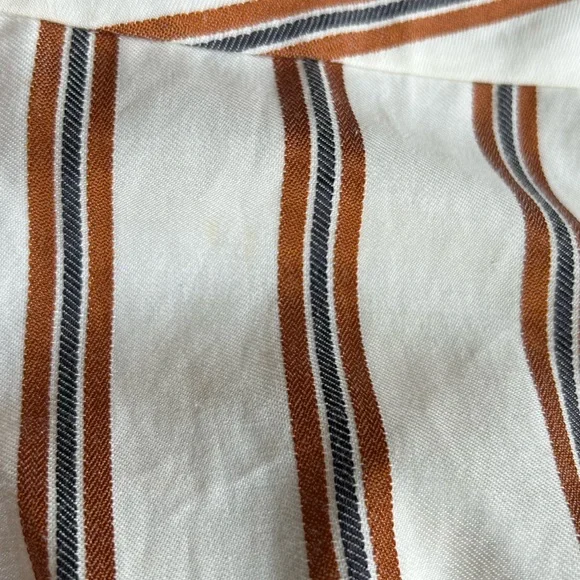 * Size: L. Designer size 40* Condition: NWT. There are some marks on the lining. One small mark on the inseam. As well as very faint mark on the sleeve. Please refer to all the photos for details.* Measurements (lay flat, approx): pit to pit: 21”; inseam: 29”.* Details:- Fluid Striped Jumpsuit with Wrap-Over Front- Flaunting a Surplice Neckline- Raglan Sleeves- Open Front- Elasticized Waist- Side Seam Slip Pockets- Straight Leg- Fully Lined- Machine Wash- Made in Tunisia#018