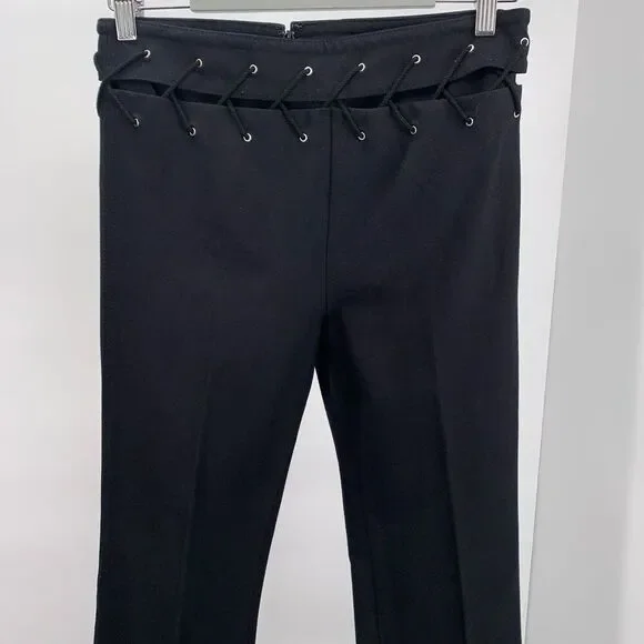 DEREK LAM 10 Crosby black bootcut pants lace up waist sz 4 or s cotton stretchy