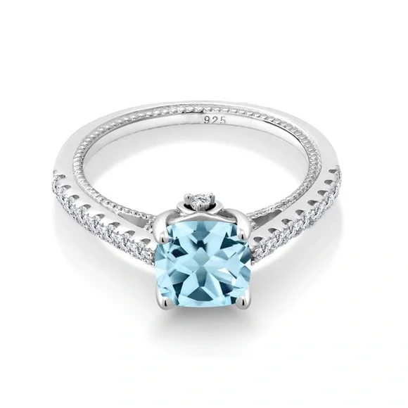 Gorgeous Cushion Cut Luxurious Sky Blue Topaz and White Sapphire Ring. Show stopping cathedral setting & vintage mill grain detailing.* 2.30 cttw Cushion-Cut Sparkling Natural...