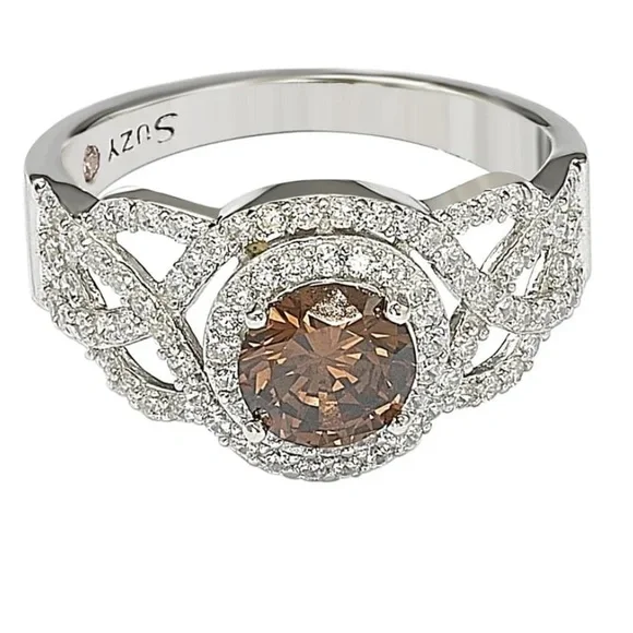 Show Stopping Suzy Levian Chocolate Champagne Vanilla Simulated Diamonds Ring NWT* 2.64 carats Brilliant Cut Simulated Diamonds* Fire and Ice Chocolate Champagne Vanilla SimulatedDiamonds* Rose Gold Plated* Hallmark Fine 925 Sterling Silver * Hallmark Stamped Suzy Levian Also available in White Gold, Champagne, and Vanilla Diamonds (select size that says white gold)All measurements are approximate. Photos enlarged for details. Includes Suzy Levian card and jewelry bag.