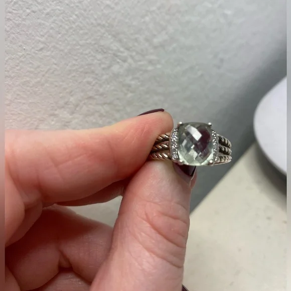 David Yurman Petite Wheaton Ring - Prasiolite and Diamonds. Size 6.5!