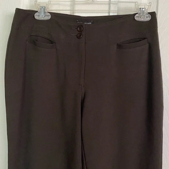 Eileen Fisher Brown Straight Trouser4 pocketsStretchy material 71%Viscose, 24% Nylon, 5% SpandexSize:XSMeasurements laying flat & unstretchedWaist: 14½”Rise: 9”Inseam: 32”Offers always welcome, feel free to ask any questions! Fast shipping , sold as shown10068