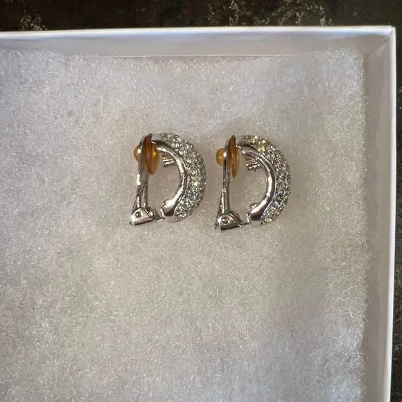 Elegant clip-on earrings with a sparkling silver finish. Perfect for adding a touch of glamour to any outfit.These earring are beautiful with no missing rhinstones, very sparkly