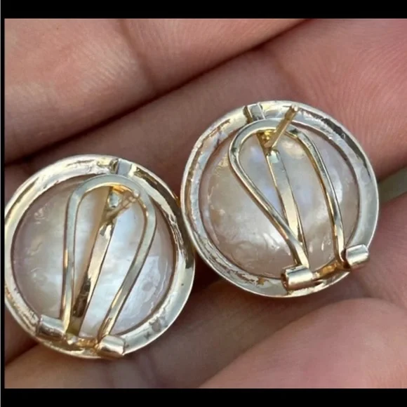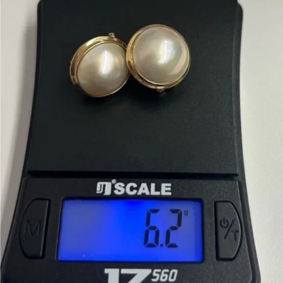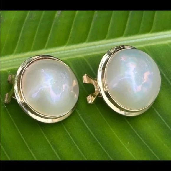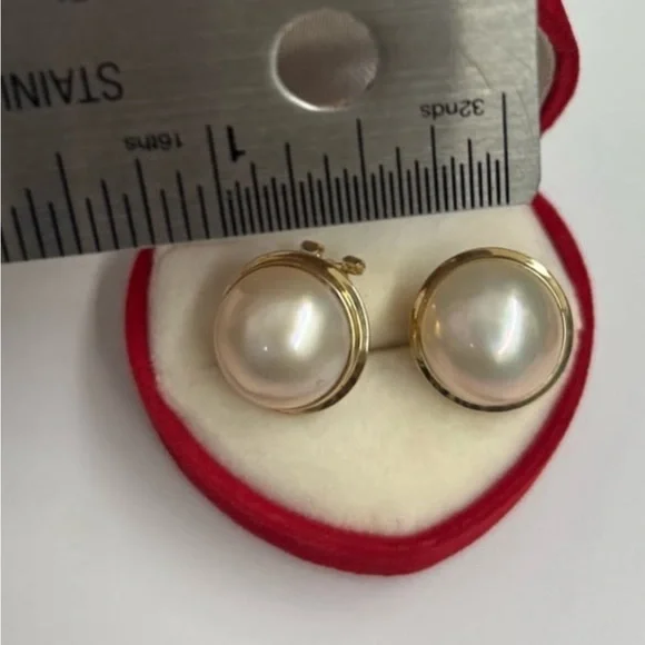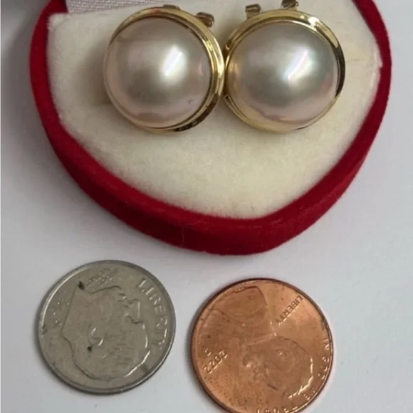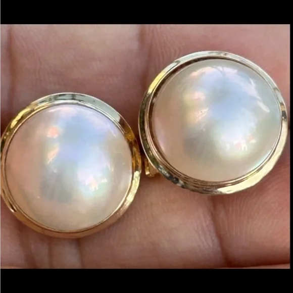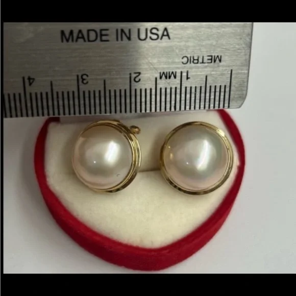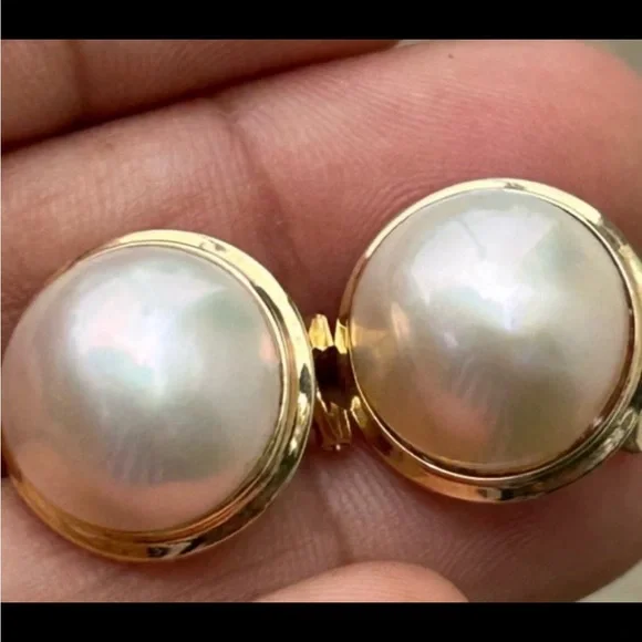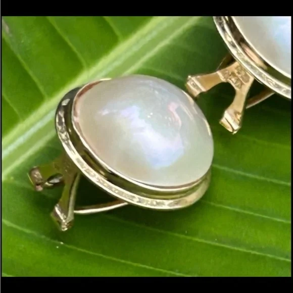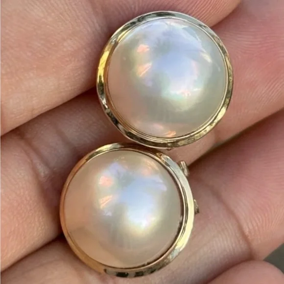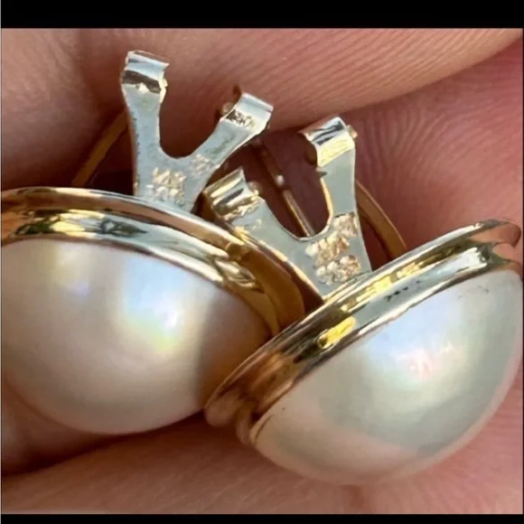 14k 14 karat real solid yellow Gold Mabe’ Pearls stud earrings