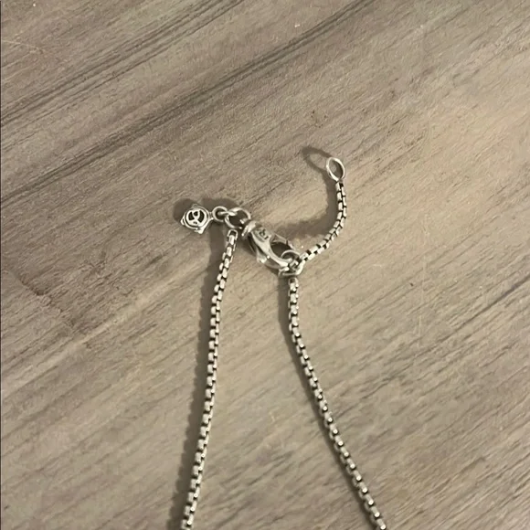 Stylish silver chain necklace by David Yurman. Features a minimalist design with a delicate chain.