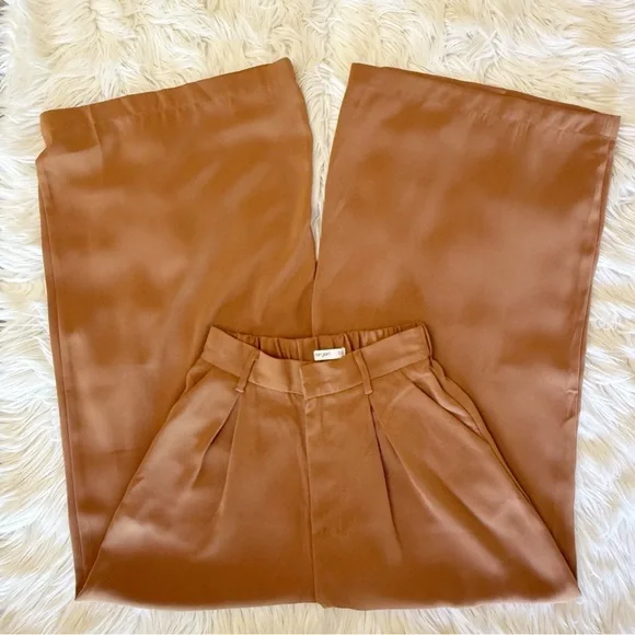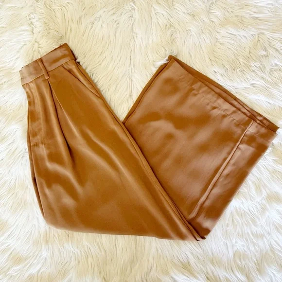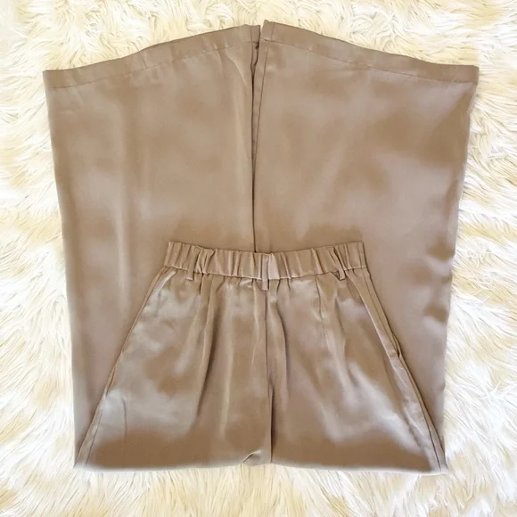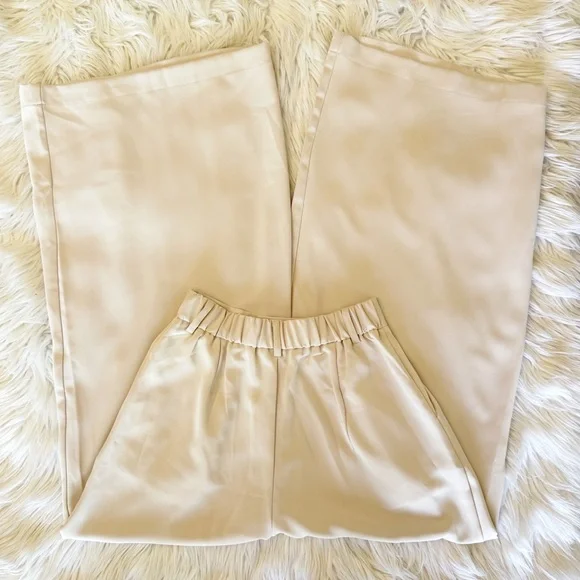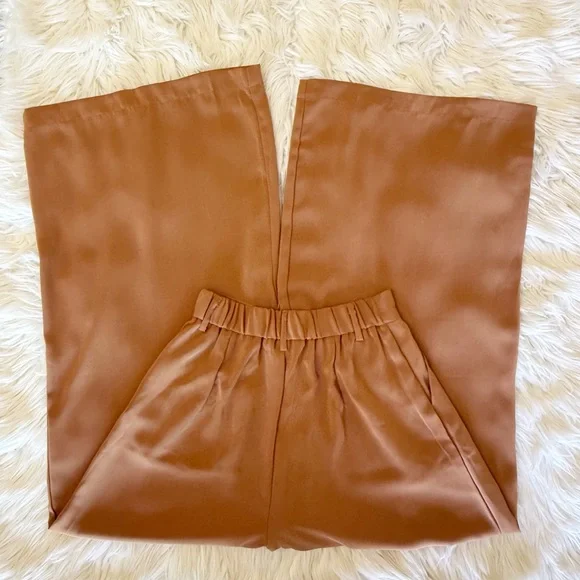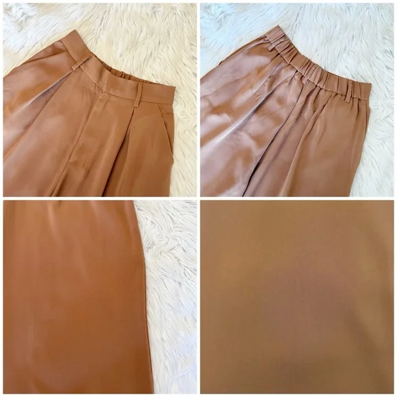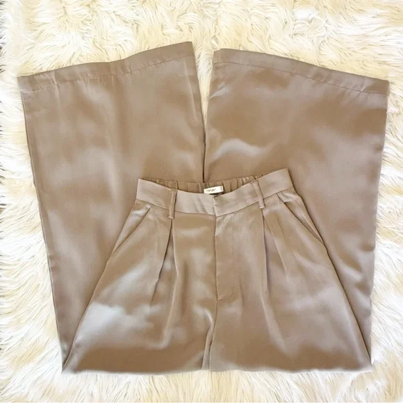 Three Pairs Of High Waist Wide Leg Long Palazzo Pants XSColors Beige, Mocha and Brown 27.5” inseam 100% Polyester *some marks on all three of the pants, photos *wrinkles/fold...