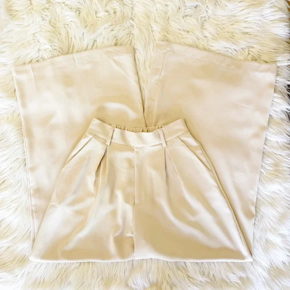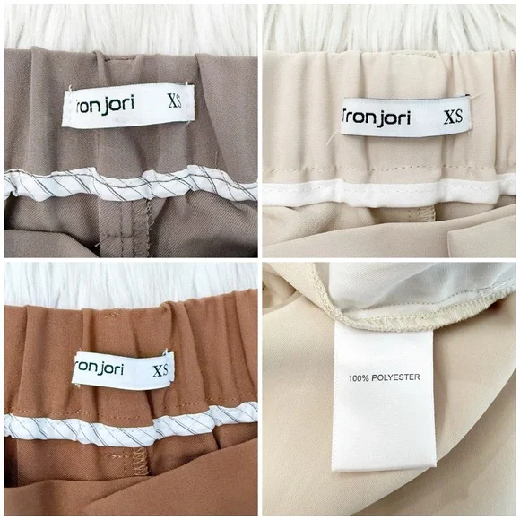 Three Pairs Of High Waist Wide Leg Long Palazzo Pants XSColors Beige, Mocha and Brown 27.5” inseam 100% Polyester *some marks on all three of the pants, photos *wrinkles/fold lines Marks may be permanent