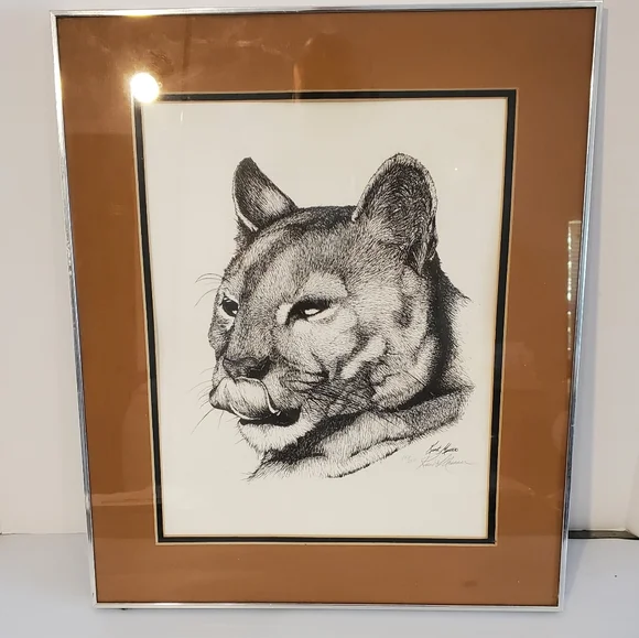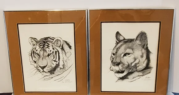 In Excellent Condition. Kurt Musser Signed & Numbered Limited Edition Large Cat Prints. Both measure 16" X 19"