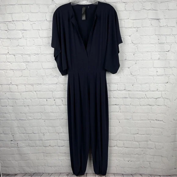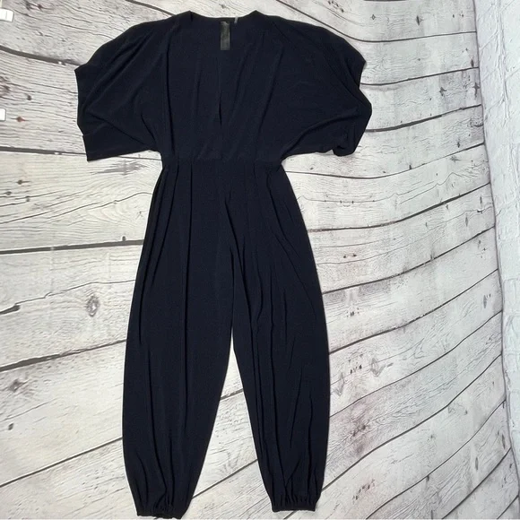 NORMA KAMALI Kulture Rectangle Jog jumpsuit kimono sleeve deep v-neck, size XS