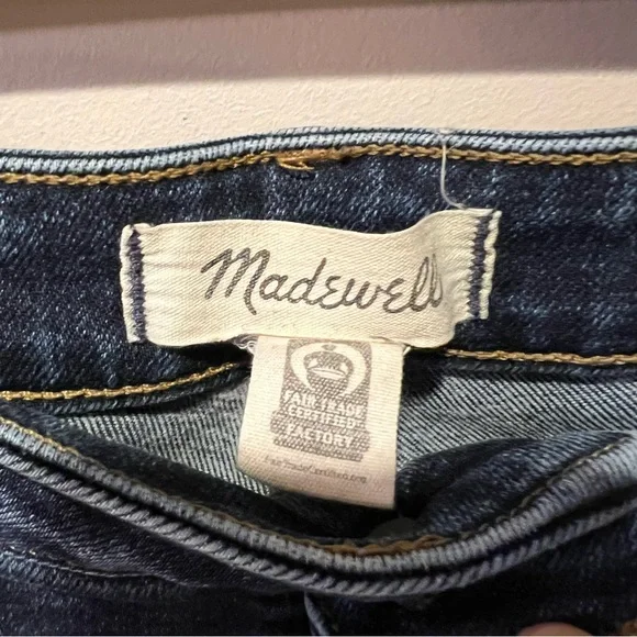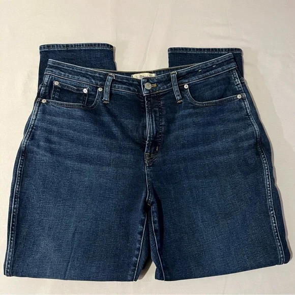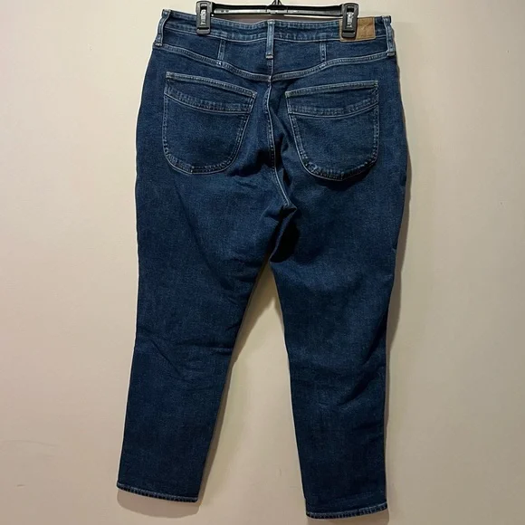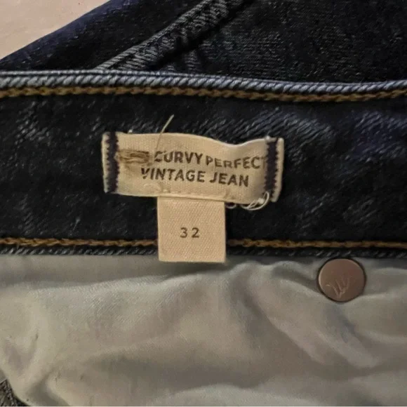 Madewell Curvy Perfect Vintage JeanMedium Dark WashSize 32From Madewell website:The cut: designed for an hourglass shape (see: narrower waist with a contoured band, a longer rise and a little extra room at the hips and thighs), these curvy Perfect Vintage jeans have tapered legs and the holds-you-in sorcery of our Magic Pockets™ in front.The fabric: our best-selling Heritage Stretch denim has an old-school look and a touch of give for a perfectly broken-in feel.Dark medium wash with authentic fading. Natural highs and lows on seams.11" rise, 13 1/4" leg opening, 29" inseam.99% cotton/1% elastane.Machine wash.Imported.