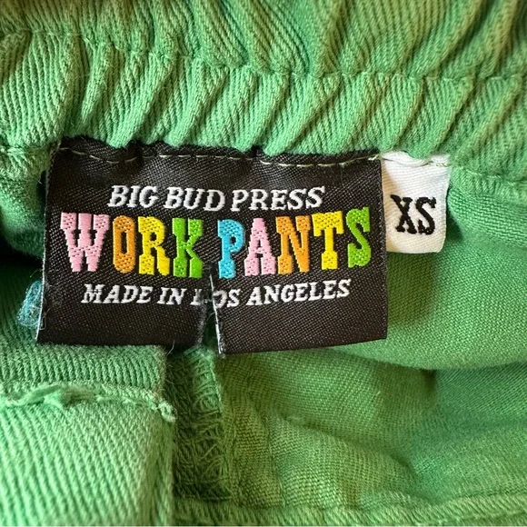 Big Bud XS Press Kelly Green Work Pants. These are in good condition. They have seen a little bit of wear, but they still look great.