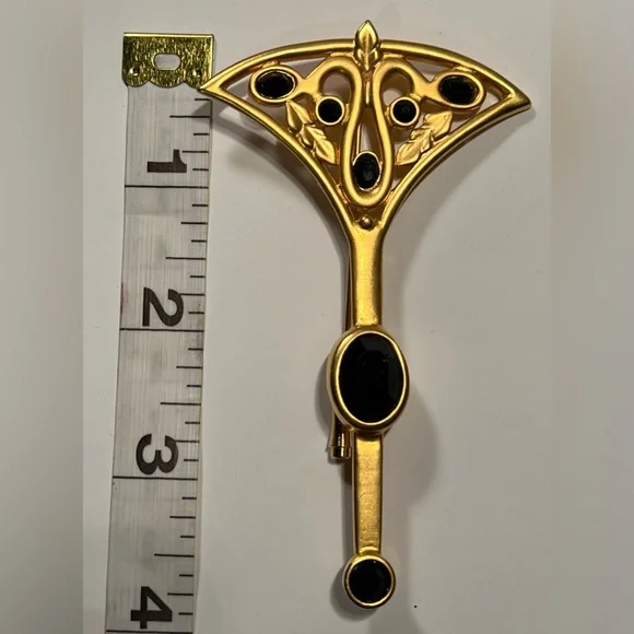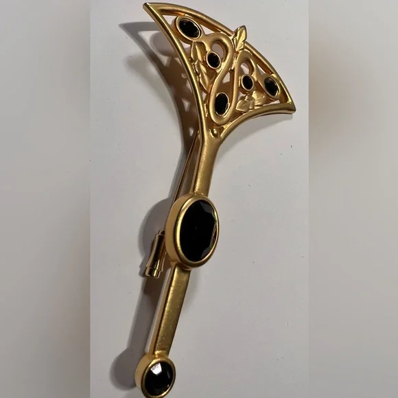 This Vintage Fan brooch from Karl Lagerfeld Couture is gorgeously crafted with 24kt matte gold plating and Swarovski jet stones. See my closet for matching earrings!Still...