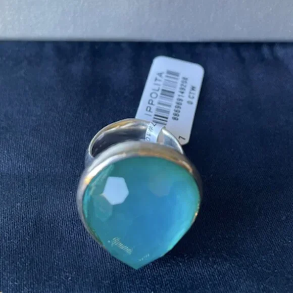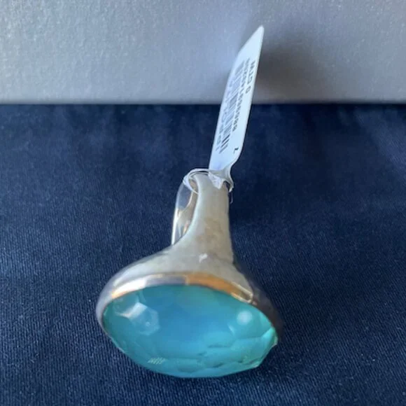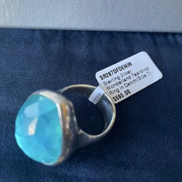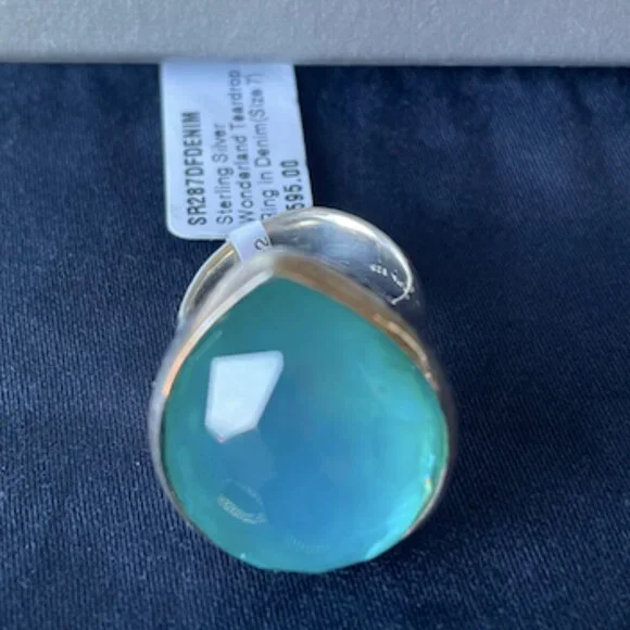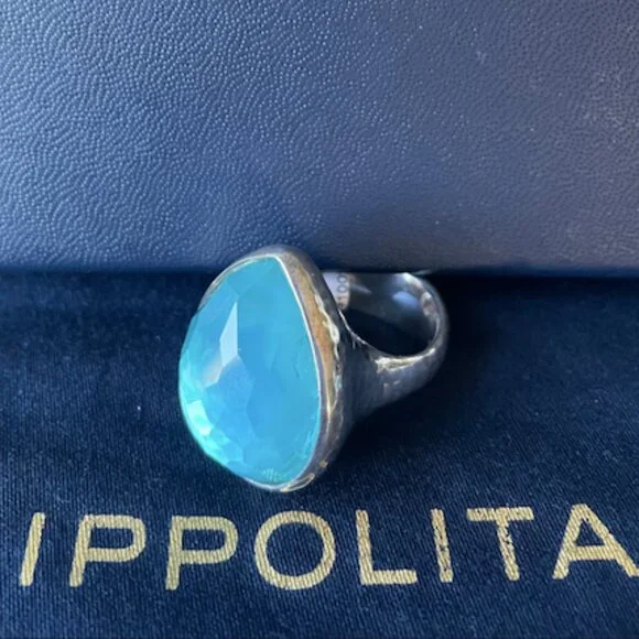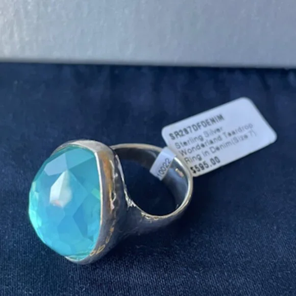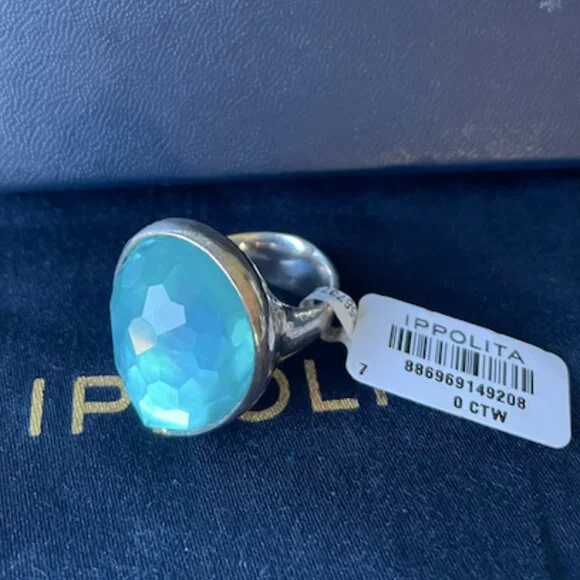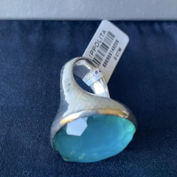 New with tags (NWT)Ippolita harnesses the natural, exotic properties of bright silver and color-enhanced mother-of-pearl to create this statement ring.From the Ippolita Wonderland Collection.Signature hand-hammered sterling silver.Teardrop doublet face of clear quartz over denim color film.Approximately 4/5"W (22mm).