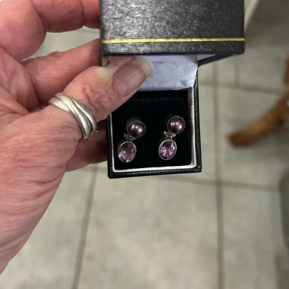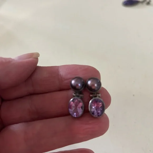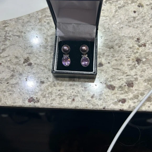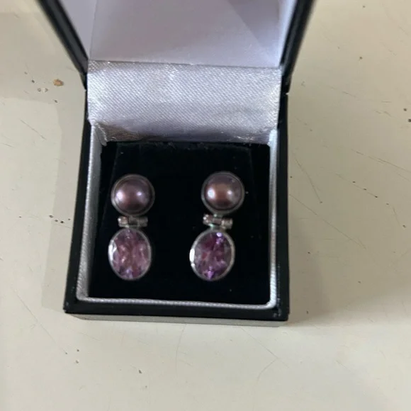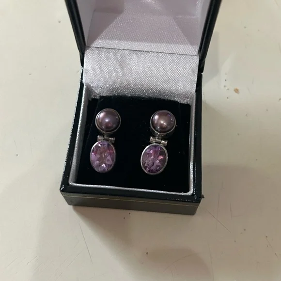 Tahitian Mabé pearl and Amethyst earringsVery Rare and Vintage Possibly Russian