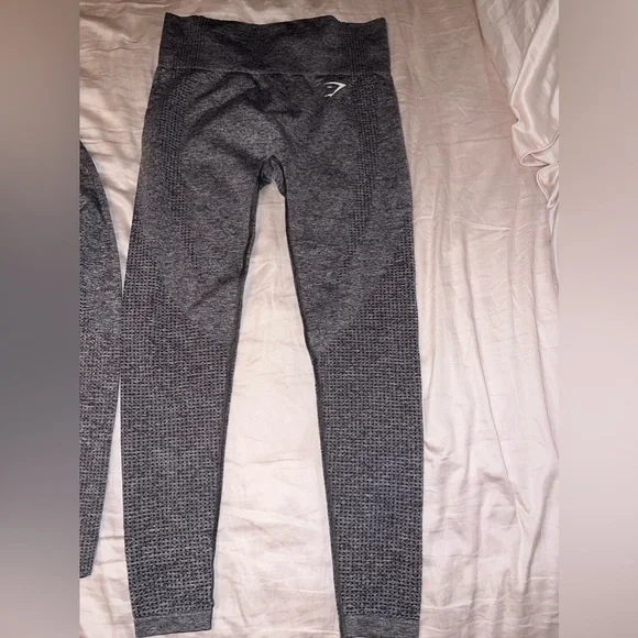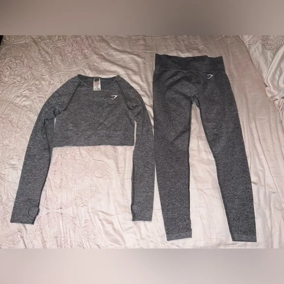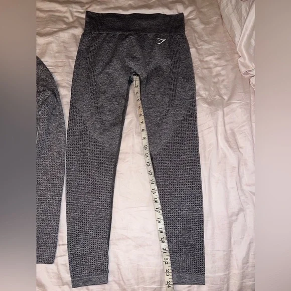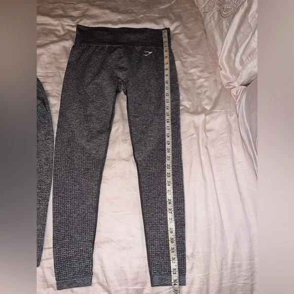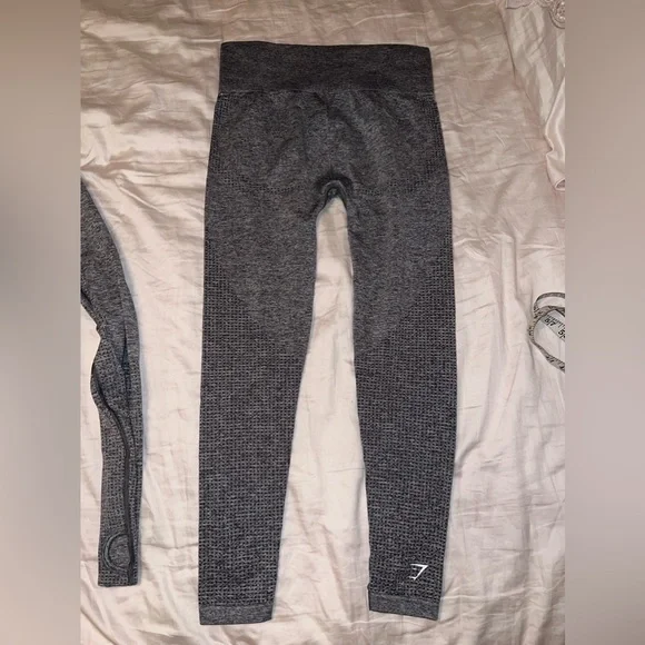 Like New VITAL SEAMLESS SET-both are a size medium-used once ; measurements in pics -bottom logo on leggings has a crack in it other wise no stains or holes