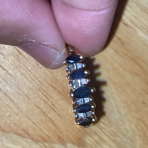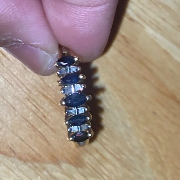 Solid 10 karat yellow gold marked and tested. Natural diamonds and sapphire thoroughly tested. We are licensed, professional jewelry dealer and appraisers. Buy with confidence…...