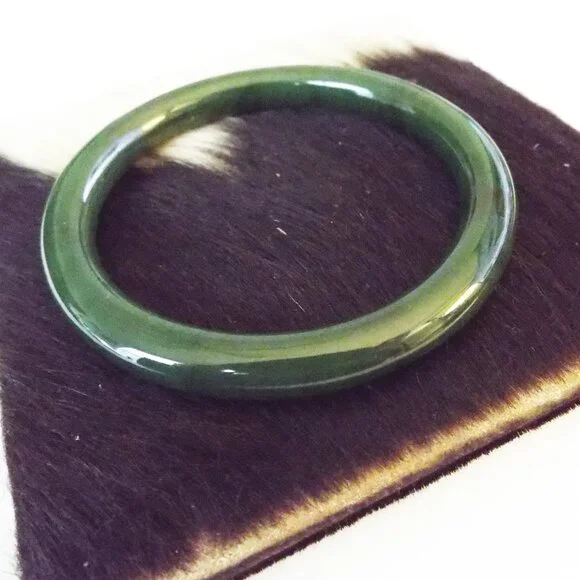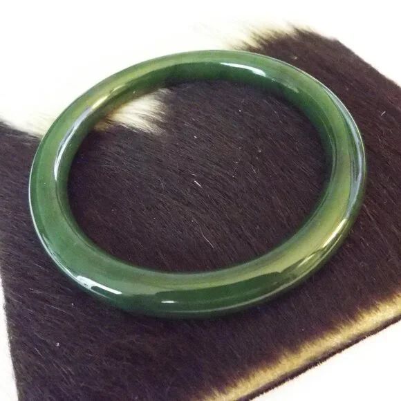 1960´S EXPORT EMERALD NATURAL GREEN HETIAN JADE ROUNDED BANGLE BRACELET B