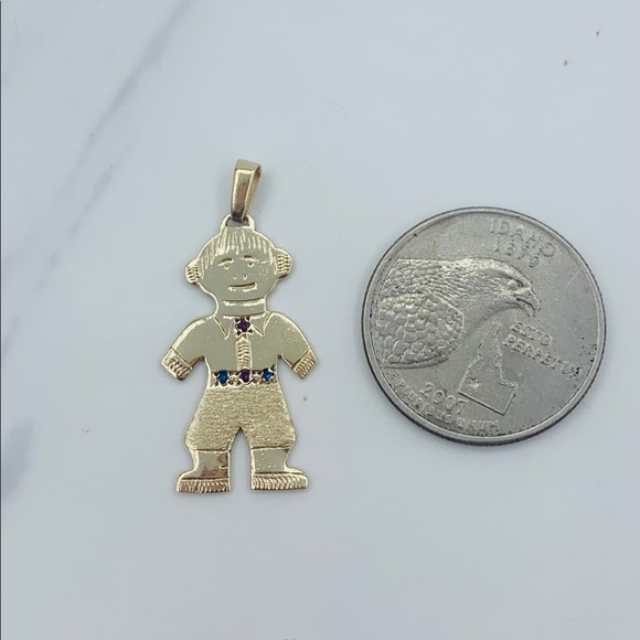 ❤️ Real 14k Gold Pendant Boy❤️ Kids Son Mom Pendant ❤️ Blue & Red Cubic Zirconia❤️ Approx 27mm or 1.1 Inches ❤️ Dije De Oro 14k ❤️ Niño Representando Hijo ❤️ Mide 27 milímetros SKU 61752New