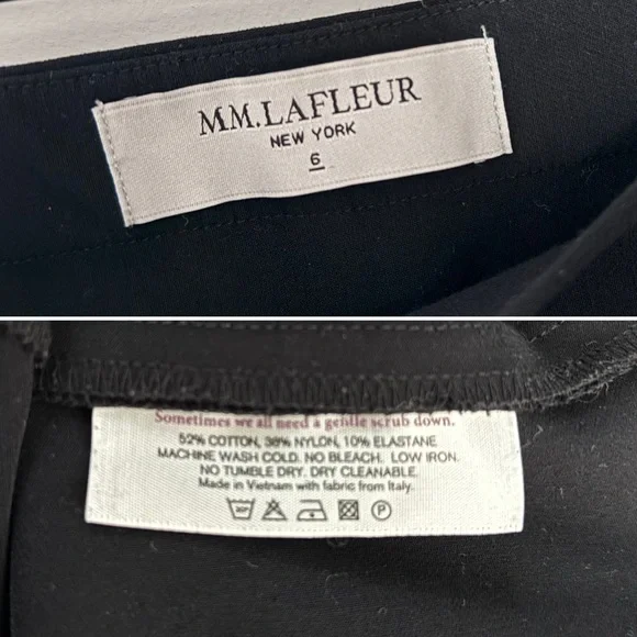 MM Lafleur The Foster Pant Power Stretch in Black Size 6 - Refer to my photos for measurementsWork Office Career TrouserMachine-Washable Perfect for Travel Wrinkle Resistant High Stretch Adjustable Hem Day To Night Fit: Curve Hugging Body Type: Hips-friendly, Maternity-friendly, Petite-friendly Waistline: High rise Bottom length: Regular With over 70,000 fans, the Fosters are our #1 best-selling pants of all time. Made from a thick Italian-cotton blend, they strike the perfect balance between structure and stretch. Adjustable hems allow you to switch the length from full-length to cropped. Made in Vietnam with fabric from Italy. 52% Cotton, 38% Nylon, 10% Elastane Machine wash cold. No bleach. Low iron. No tumble dry.Dry cleanable. Basic Minimalist Sustainable Capsule Wardrobe StapleExcellent preowned condition - refer to my photos for details as part of description